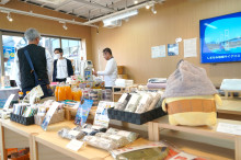 「菊間瓦」など今治らしさのある商品が並ぶ 今治駅の観光インフォメーションセンターにて