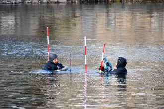 「今治城の堀にダイバーが入っている」――2月7日、城を訪れた市民が足を止める光景が広がった。