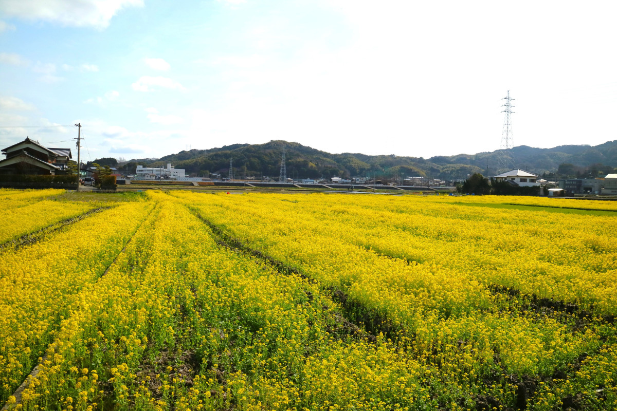 朝倉支所の職員によると、田んぼアートは近くでは分からず、笠松山に上ると文字が浮かび上がって見える。「朝倉地域のシンボルでもある笠松山は1時間ほどで登れる山。山登りをしなくても、花の美しさは感じていただける。ぜひ見に来ていただければ」と呼びかける。