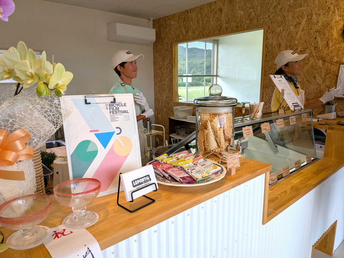 地域の食材を使ったアイスクリーム店「ルポン・キャトリエム」(今治市上浦町井口)が10月26日、大三島にオープンした。