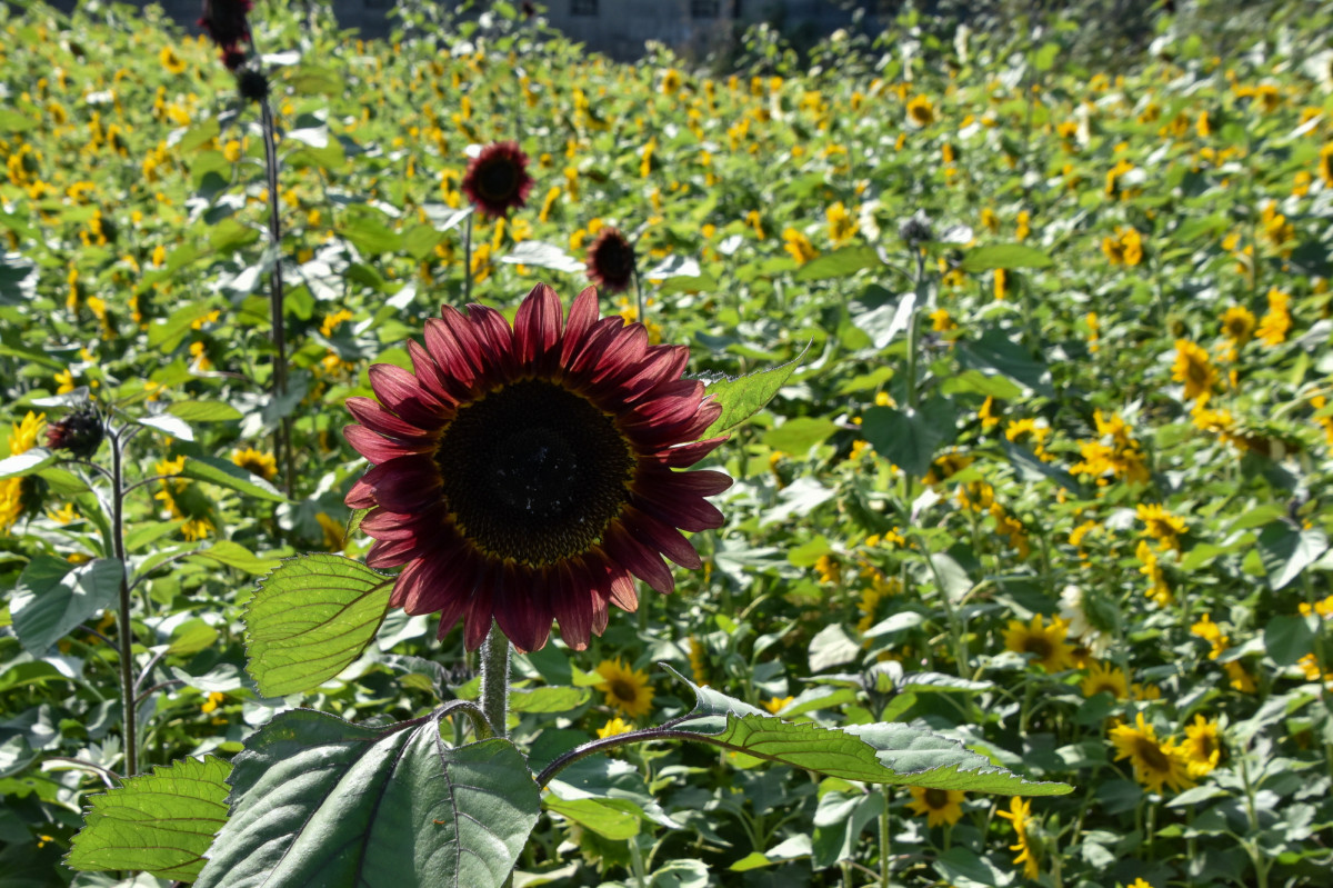 今治・朝倉4カ所の田んぼで3色のヒマワリが見頃