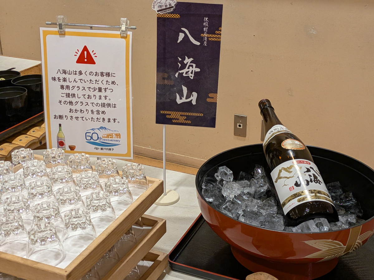新潟・休暇村妙高も60周年を迎えたことにちなんで、「八海山」もビュッフェに登場。