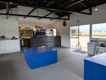 テークアウト専門のカフェ「BLUE ROSE COFFEE(ブルーローズコーヒー)」(今治市上浦町井口)が12月15日、大三島にオープンした。