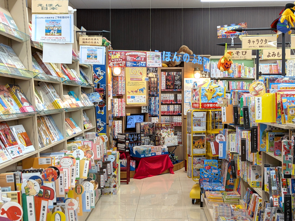 子どもや大人にも人気の絵本のコーナー。種類も豊富にそろう。明屋書店喜田村店(今治市東村1-1-3)