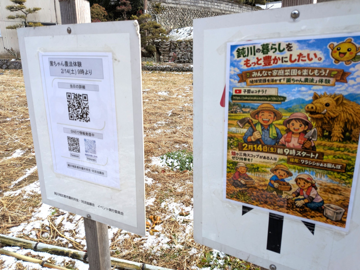 2月14日には「わらシシ」のある田んぼで、地域の資源を活用する「菌ちゃん農法」体験が行われる。当日は20メートルの畝(うね)つくりを実施するという。わらシシ(今治市玉川町鈍川戊616)