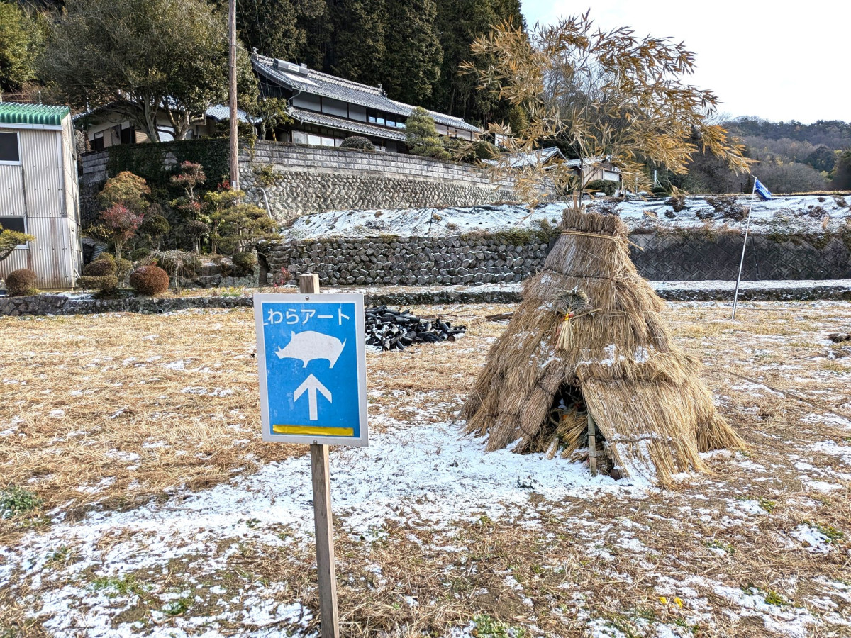 玉川文化交流館で展示中の、今治東中等教育学校の生徒による「わらシシ」