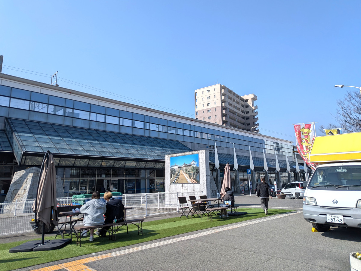 今治駅前で2月14日、駅利用者や観光客、市民が気軽に立ち寄れる空間づくりを目指す実証実験「駅前Bariショップ」が始まった。