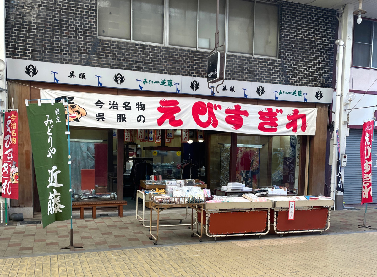 えびすぎれ期間中は、各店がのれんやのぼりを掲げて特価で販売する。今治銀座商店街(今治市常盤町3-4-15)