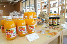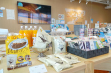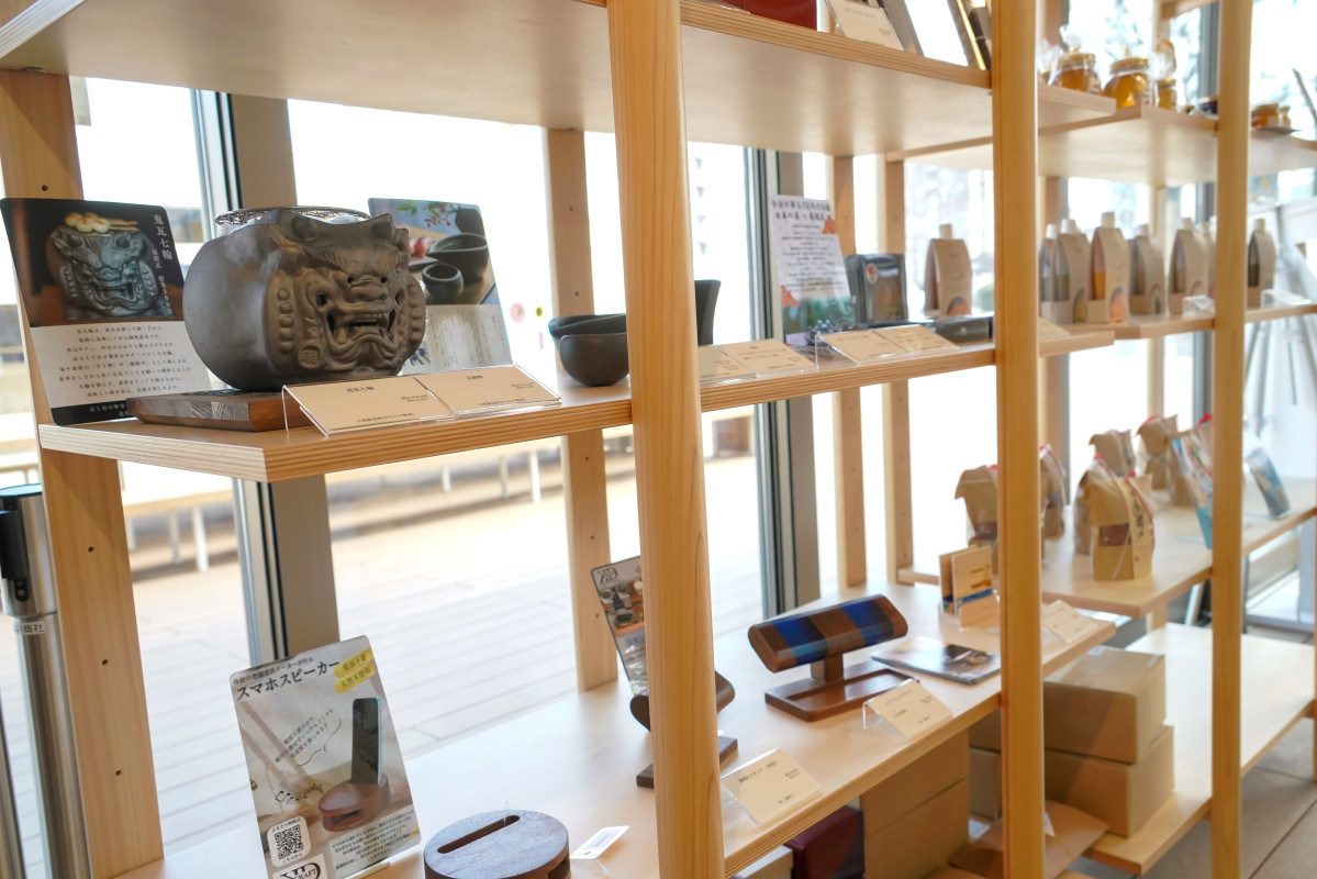 「菊間瓦」など今治らしさのある商品が並ぶ 今治駅の観光インフォメーションセンターにて