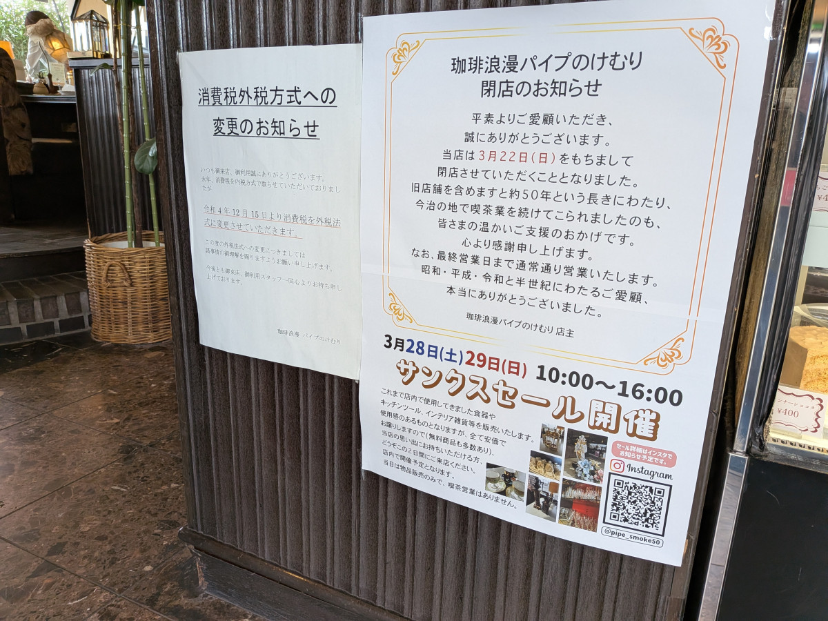 惜しまれながらも3月22日に閉店が決まった「パイプのけむり」