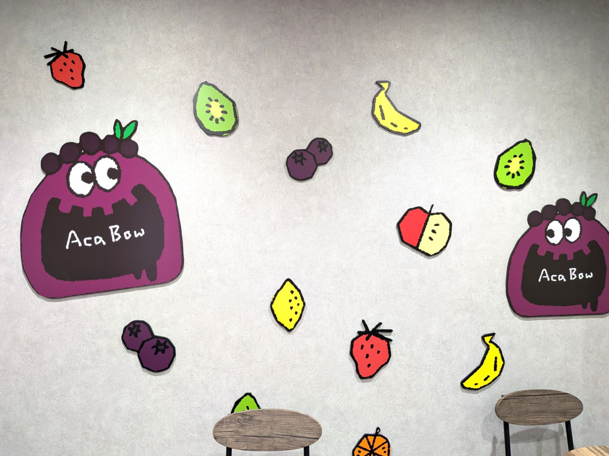 店内の壁面にはオリジナルキャラクター「アサボー」があしらわれている。アサイー工房 今治店(今治市東村南1丁目5-33 第2コーポ唐子 1F)