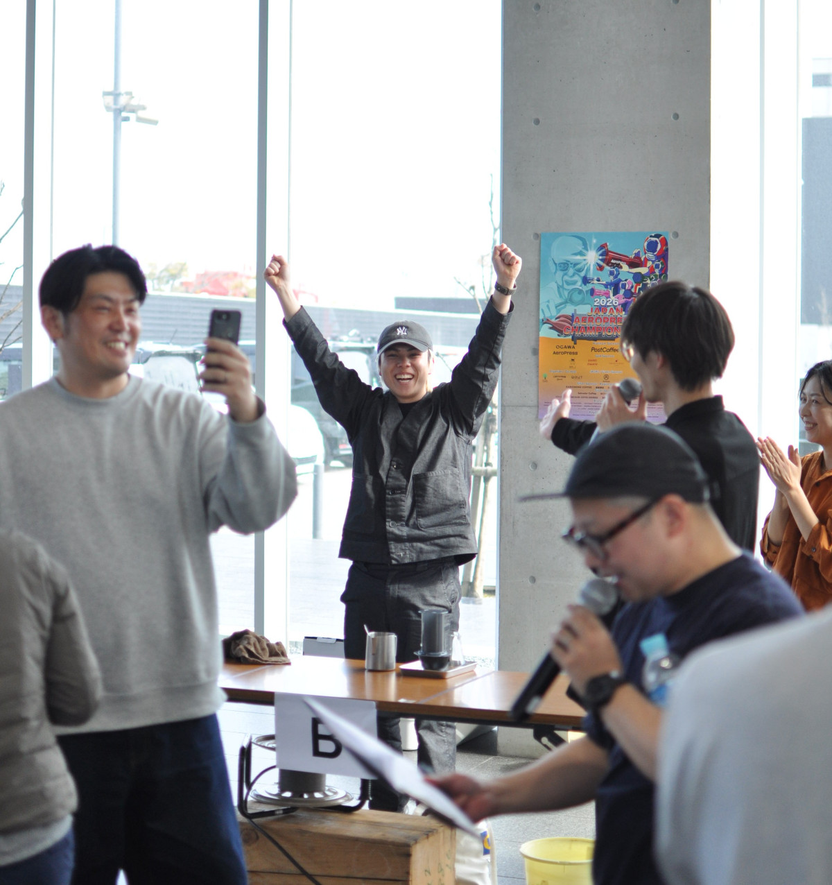 結果が決まった時の喜びはひとしお。勝者が決まるたびに歓声が上がった。(写真提供=Japan AeroPress Championship)みなと交流センターはーばりー(今治市片原町1丁目1-27)