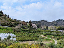 キャンプやバーベキューなどが楽しめる自然公園「朝倉ダム湖畔緑水公園」周辺のソメイヨシノの様子。朝倉ダム湖畔緑水公園(今治市朝倉上乙762番地2)