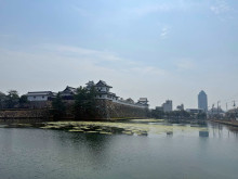 日本三大水城「今治城」 お堀に「緑の絨毯」(3月30日撮影)