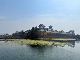 日本三大水城「今治城」 お堀に「緑の絨毯」(3月30日撮影)