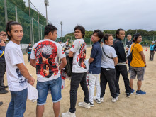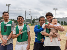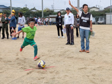 サッカーとおむすび作りをきっかけに、世代や国籍を超えて地域の人たちが交流するイベント「サッカーでお結び会」が10月19日、今治市大西町で開かれた。